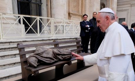 A statue of a homeless Jesus done by a Canadian sculptor has Pope Francis as an admirer.