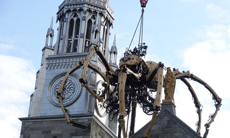 The Archbishop of Ottowa may be responsible for some of his parishioners having arachnophobia nightmares after he allowed a giant robotic spider to be perched on Notre Dame Cathedral.