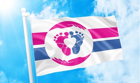 The website explains the flag’s pink and blue colors reemphasise the mother and child’s two lives as well as traditional boy and girl colours. The stripes form an equal sign, emphasising that the unborn child is “equally and fully human, and therefore deserving of equal human rights,” while also representing the role of both the father and mother in creating and raising a child.