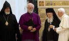 Thursday's meeting also included Ecumenical Patriarch Bartholomew I and representatives from Greek, Russian, Serbian and Belarusian Orthodox churches as well as Lutheran, Methodist and Baptist leaders. Several rabbis were joined by some 60 Muslims, a half-dozen Hindus and Shinto believers, three Taoists, three Jains and a Zoroastrian.