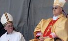 Next to him, in Jesuit black under plain white robes, Cardinal Bergoglio, with his iron cross and his horn-rimmed spectacles, looks open-mouthed upon the radiant spectacle, his famously mobile face providing the perfect caption to the picture.