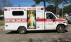Inside the converted ambulance, priests will have a supply of holy cards, rosaries, and even holy water.