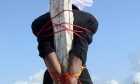 The executioner has to lace the prisoner's limbs, hands and feet to a cross-shaped pole with thick rope. It is that final moment of brutal intimacy that haunts.
