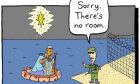 St Luke's Presbyterian Church in Remuera has put up a billboard showing Mary and Joseph as refugees on a leaky boat being turned away from the European coast.