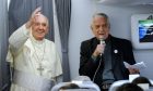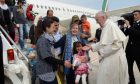 Three refugee families, including six children, boarded the Pope's plane for Rome at the end of his short visit on April 16.