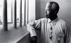 Image: Mandela in 1994 looks through the bars of the Robben Island cell he was held in for 18 years Jurgen Schadeberg/Getty Images