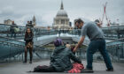 I would find this disconcerting. I'd be thinking: I've got to figure out how to assemble my jack — quickly. I'm going to get my bright Easter clothes grubby from this dirty tyre.