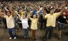 After the song, many in the crowd kept their hands raised as they prayed in tongues, speaking in unfamiliar languages, the Catholic News Service reported.