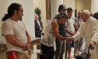 Disadvantaged and homeless dine at Vatican with Pope Francis]]>