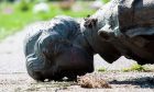 A statue of Queen Victoria was toppled during protests in Winnipeg, Manitoba on Thursday, before it was beheaded. The head was then thrown into the Assiniboine River.