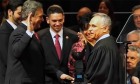 Nassau County Executive Edward Mangano was sworn in for his second term Thursday, taking the oath of office on an iPad with the Bible displayed on the screen. A printed copy could not be located. During an almost three hour ceremony, Mangano address a standing-room-only audience and recalled his rise to the county's highest office. Read more