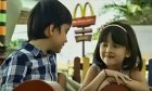 The commercial showed two young children flirting with each, and a young girl asks a boy of the same age if she can be his girlfriend. The boy wasn't interested and says that "girls are too demanding", but after he discovers she plans to get some French fries, he smiles and they walk off to McDonalds.