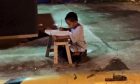There is no lamp in Daniel's home so he chose to study near a McDonald's - using a makeshift wooden desk - because of the large amount of light beaming out of the store.