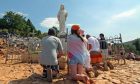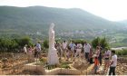 They climb rocky Podbrdo — Apparition Hill — bearing a statue of Our Lady, marking where she allegedly appeared. Pilgrims also climb up Mount Križevac, praying the Stations of the Cross, journeying to the huge cross nearly 40 feet tall built by villagers in the early 20th century.
