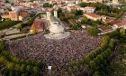 Pilgrims attend Masses at Medjugorje's St. James Church during the day and the evening Mass is celebrated outdoors to accommodate huge crowds.
