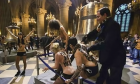 At one point some of the women rang an enormous bell on display in the hall of the landmark cathedral, part of a set of new bronze bells cast for Notre Dame's 850th anniversary this year. Cathedral staff turned off the church lights and pulled the women away.
