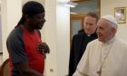 During the subsequent meeting with Francis, Amos said to him: "So me coming on this pilgrimage, being non-religious, I was looking for answers and faith. But as a gay man, I don't feel accepted."
