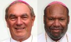 Catholic Archbishop of Port Moresby, John Ribat, flanked by the General Secretary of the Catholic Bishops' Conference in PNG and Solomon Islands Fr Victor Roche, announced the church's position at a press conference in Port Moresby on Wednesday 1 May.