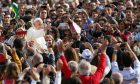 The unidentified child shook off cardinals as they tried to lead him away, and turned down bribes of candy in favour of clinging to the Pope's legs as he addressed the audience for Family Day.