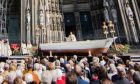 Cardinal Rainer Maria Woelki, who stood in the boat outside Cologne Cathedral on Thursday, called for compassion for migrants and refugees.
