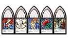 Other stamps feature stained glass windows from St Mark's Church, Carterton, St Aidan's Church, Remuera, Holy Trinity Cathedral, Parnell and the Christchurch Hospital Nurses' Memorial Chapel.