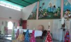 The mural in the photo has Mary with the child Jesus, and St Peter Chanel is seated with the palm of martyrdom in his hand surrounded by children.