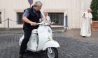 Francis showed his support through the papal almoner Cardinal Konrad Krajewski (pictured on the bike), who administers the pope's charitable work.