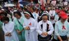 Nuns and priests in Manila have led a rally of around 10,000 Catholics in protest against a proposed birth control bill that would provide free contraceptives and introduce reproductive health and sexuality classes in schools. The protesters, many dressed in red, gathered at a Catholic shrine to voice opposition to the bill, which would also Read more