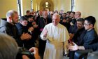 The pope met with the Polish Jesuits in a private setting, as he often visits with members of his religious order on trips abroad.