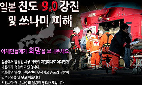 Koreans have been posting messages on the Internet to cheer up the Japanese, such as: ‘Japan, you can do it. Go for it!’, ‘So close, yet so far. Nevertheless, we are one family on the globe,’ and ‘We are neighbours who can help each other when the other is in need.’