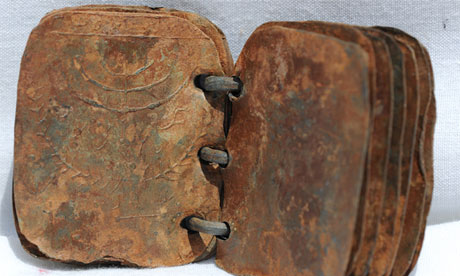 The group of 70 or so books, with between 5 and 15 lead leaves bound by lead rings were located inside a northern Jordanian cave sometime between 2005 – 2007.