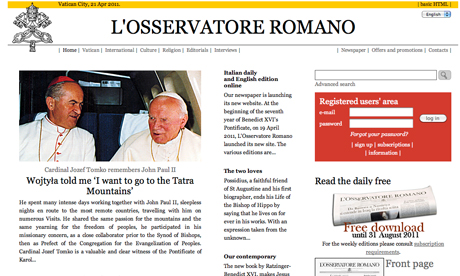 The online version of L’Osservatore Romano is free until 1 September when it will become a subscription service. The Guardian reports the price will be very low.