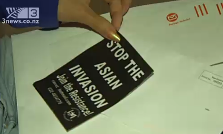 The group, which calls itself the Right Wing Resistance, has distributed “Stop the Asian Invasion” leaflets in suburbs with high Asian populations, including Pakuranga, Howick and Northcote. Police are concerned that the campaign could lead to “racially motivated violence”, says police Asian liaison officer Raymond Won.