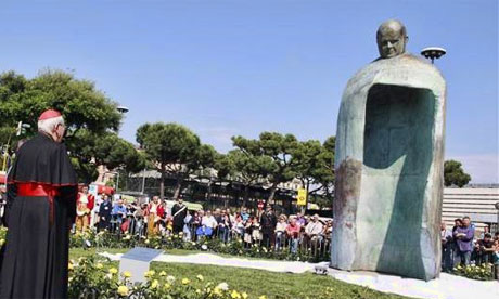 The unconventional statue shows the former pope as a giant hollowed out figure and was meant to round off celebrations marking the beatification of John Paul and mark the former pontiff’s 91st birthday.