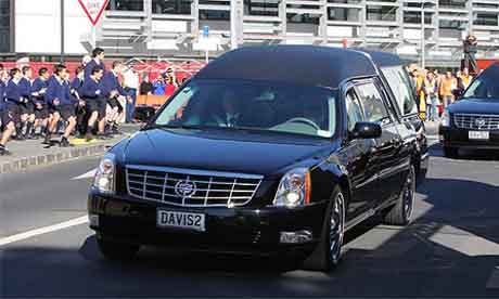 On the way to the Cathedral the cortege had driven through the Domain where 380 St Peter’s College students formed a guard of honour and performed a haka. Sir Paul’s grandson attended the school.