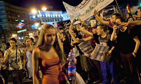 Between 3000-5000 anti-pope protesters marched on the Spanish capital’s central Sol Plaza to voice their concerns about the 50 million euro price tag of the four-day trip.