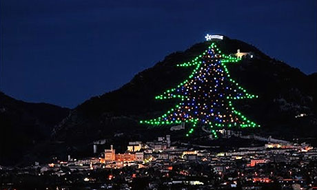 The electronic tree extends more than 2,000 feet upon the face of Mount Igino near Gubbio, and uses more than 25,000 feet of electrical cable. Built in 1981, it was recognized in 1991 by the Guinness World Records as the world’s largest Christmas tree and stays lit until the Epiphany.