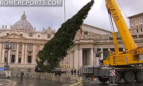 Vatican’s Christmas tree lifted in St Peter’s Square