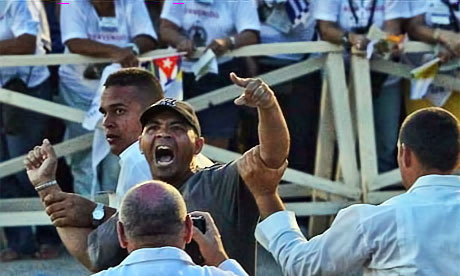 In an incident just as Benedict entered Santiago’s main square to celebrate Mass, a man shouted “down with the revolution” and was led away by security agents.