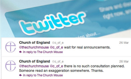The Telegraph reported on Wednesday that “Having wrestled with the best way to choose a new leader, the Church of England has decided to use the social networking site Twitter.”