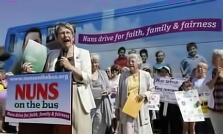 While America’s Catholic bishops are promoting a “Fortnight of Freedom” to combat Democrat President Barack Obama’s health insurance mandates, a group of nuns are on a multi-state bus tour to oppose Republican budget-cut policies.