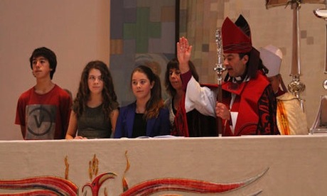Bishop elect Duckworth was led into his cathedral by about 140 supporters. They included his wife, Jenny Duckworth, and his family and members of the two movements which he and his wife helped to found: Urban Vision, and a contemporary monastery of St Andrew’s at Ngatiawa, near Waikanae, where they have been living.