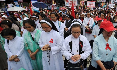Catholics make up around 80 per cent of the population in the Philippines. The annual birth rate has been steadily declining, but the government points out that some of the poorest regions have the highest rates.