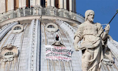 Italian man scales St. Peter’s Basilica to protest economic reforms