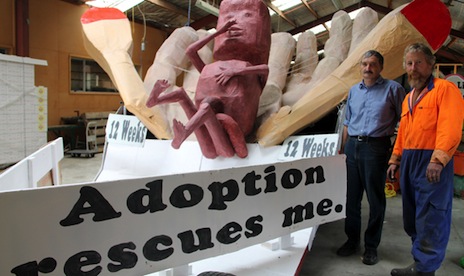 An anti abortion float containing a two metre model of a foetus has been banned from participating in Alexandra’s Blossom Festival parade.