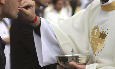 Unaware of his condition, Bishop Folda distributed Holy Communion at four churches, including a Mass at a convention of priests, .