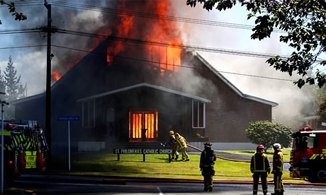 A fire, yesterday, extensively damaged St Philomenia’s Catholic Church in New Plymouth.
