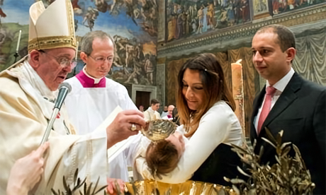 Pope baptises unmarried couple’s child in Sistine Chapel