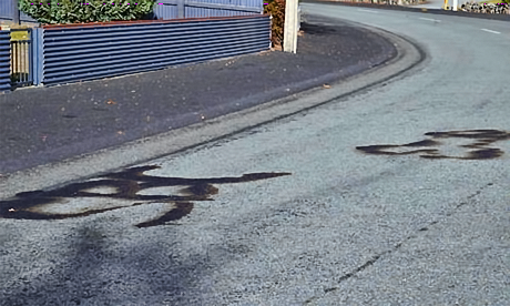 They also poured out the letters “SBC” in petrol on the road and lit it.
