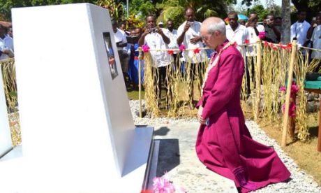 The spiritual head of the Anglican Communion, Archbishop Justin Welby, has prayed before a monument to seven Anglican martyrs in the Solomon Islands.